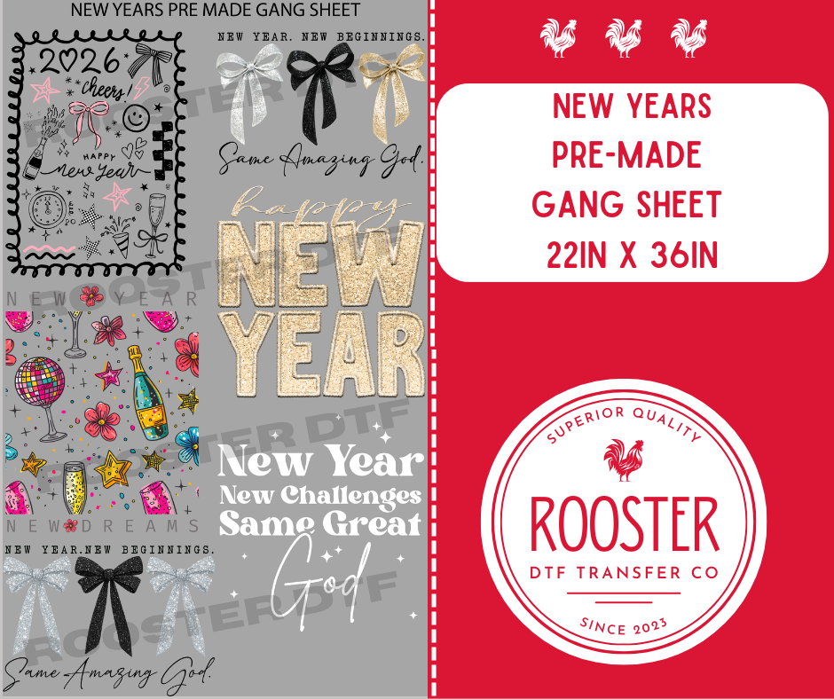 DTF TRANSFER ONLY - NEW YEARS PRE-MADE GANG SHEET (22x36in)