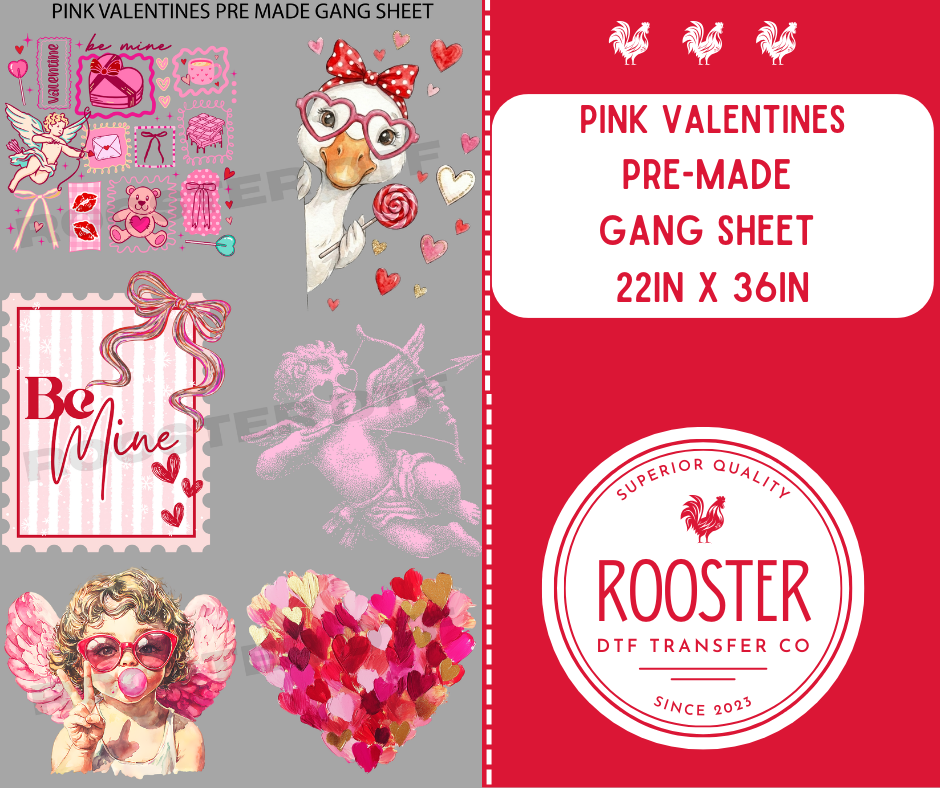 DTF TRANSFER ONLY - PINK VALENTINES PRE-MADE GANG SHEET (22x36in)