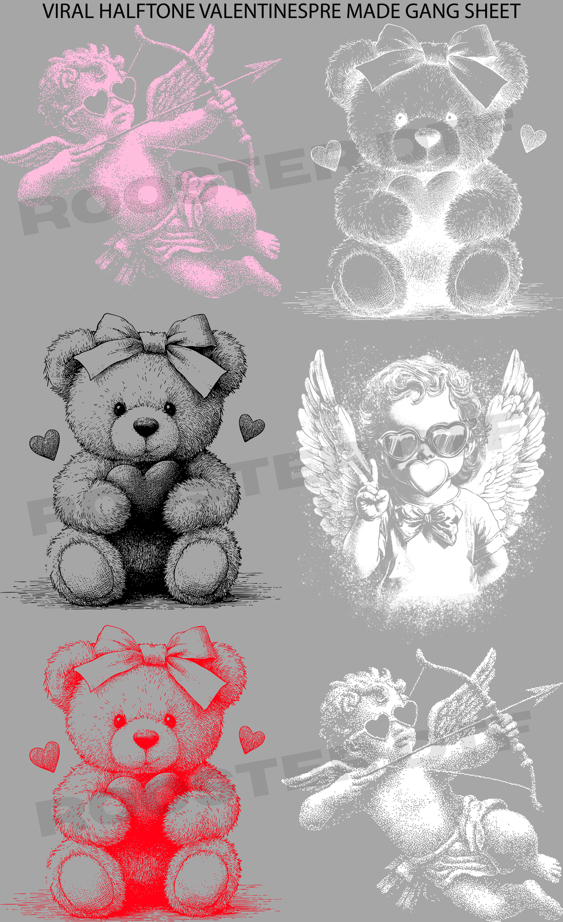 This listing is for a pre-made gang sheet of the designs shown. The gang sheet is 22in wide and 60in long. You must have a heat press to use this transfer.